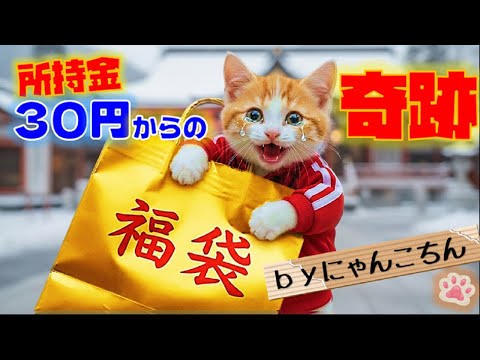 猫 所持金30円の猫が、高級福袋を手に入れるためにとった「まさかの行動」とは?【にゃんこちん】